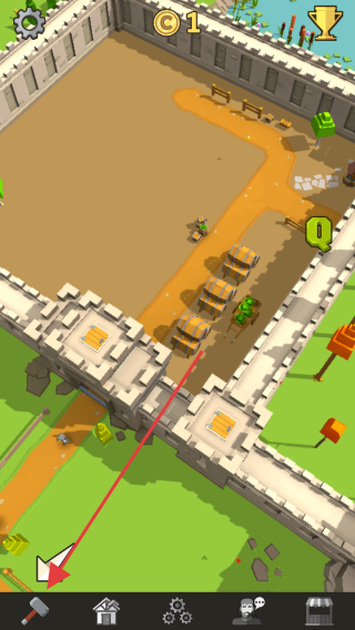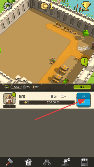 1、進入游戲后,可看到城堡類的建設(shè)場景,點擊下方的建筑按鈕,可開始進行建筑相關(guān)操作。