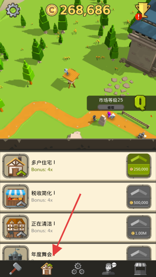 3、隨著游戲進程推進,可解鎖更多建筑和功能,如年度舞會等,點擊相關(guān)按鈕可參與或開啟對應(yīng)活動。