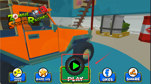 1、點擊主界面醒目的play按鈕,即可進入游戲核心程序,開啟你的末日賽車冒險之旅。