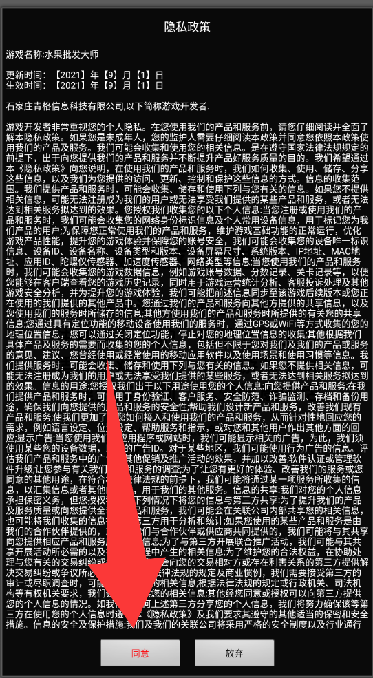 1、點(diǎn)擊隱私政策里的同意并進(jìn)入游戲。