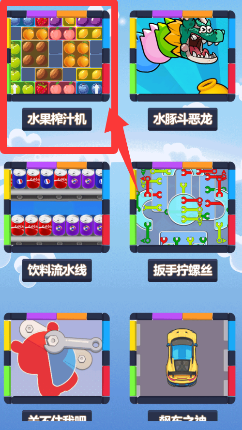 4、進(jìn)入游戲后選擇紅色框框里的水果榨汁機(jī)模式進(jìn)入。