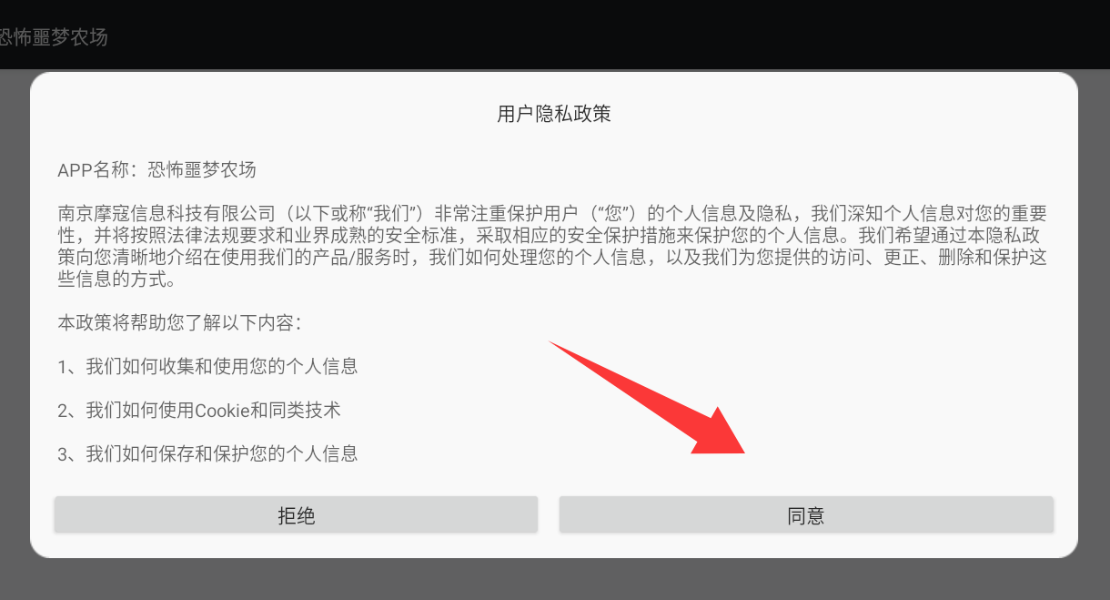 1、點擊用戶隱私政策里的同意并繼續(xù)。