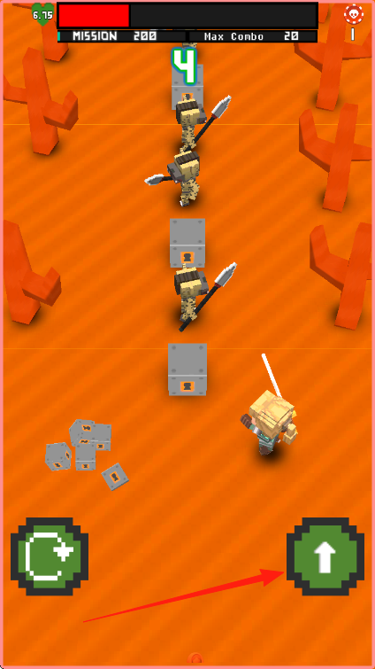 3、持續(xù)擊敗敵人,推進關卡MISSION200,積累連擊MaxCombo20,完成生存、戰(zhàn)斗任務,突破場景障礙灰色方塊。
