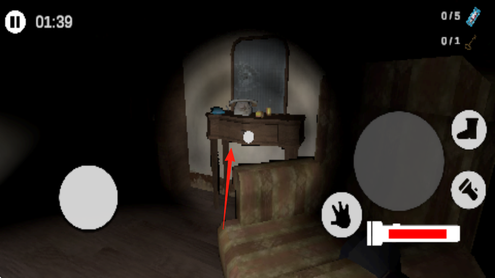 2、在過程中拾取到手電筒,可以利用手電筒照明,探索房間,移動(dòng)家具如桌子,尋找隱藏道具鑰匙、補(bǔ)給。