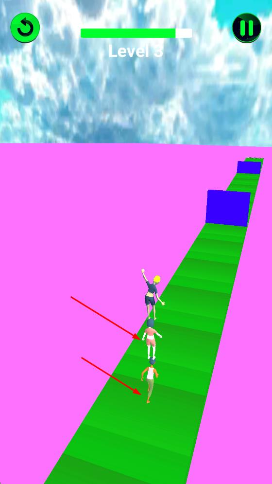 1、操控堆疊跑酷前進(jìn):玩家通過(guò)簡(jiǎn)單操作控制角色在跑酷過(guò)程中完成人塔堆疊,保持堆疊的穩(wěn)定同時(shí)向前推進(jìn),避開途中的障礙,操控方式直觀,只需基礎(chǔ)操作即可實(shí)現(xiàn)堆疊與移動(dòng)。
