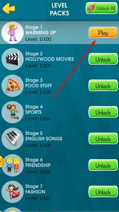 1、進(jìn)入游戲,在關(guān)卡包選擇界面,選擇可進(jìn)入的關(guān)卡包,點(diǎn)擊Play按鈕,進(jìn)入游戲場(chǎng)景。