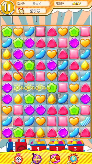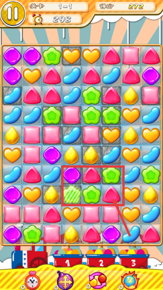 1、基礎(chǔ)消除規(guī)則:核心玩法是移動(dòng)圖形,如糖果、水果等,使三個(gè)及以上相同的圖形在橫向或縱向相連,即可完成消除,消除后會(huì)獲得相應(yīng)分?jǐn)?shù)。