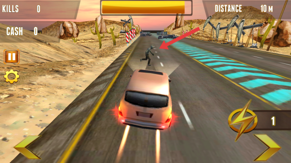 2、游戲中操控車輛行駛,遇到僵尸時(shí)駕駛車輛主動(dòng)撞擊,積累擊殺的數(shù)量、獲取現(xiàn)金并增加行駛距離。