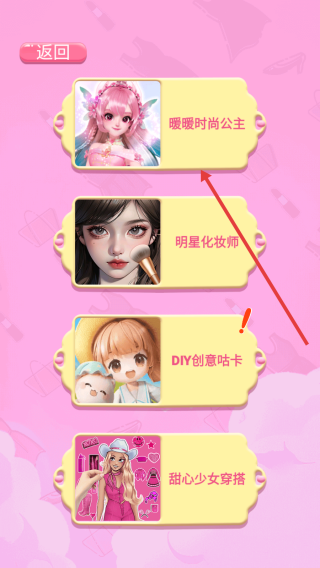 1、點擊開始游戲,進入模式選擇頁,選暖暖時尚公主,開啟角色裝扮之旅,發(fā)揮創(chuàng)意設計造型。