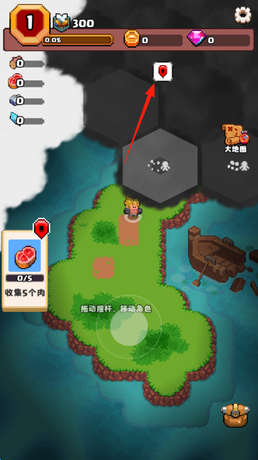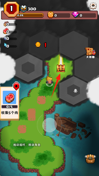 1、操控角色在六邊形地圖移動(dòng),黑霧區(qū)域?yàn)槲刺剿鞯?,按紅色標(biāo)記指引,解鎖新區(qū)域如寶箱點(diǎn)、怪物點(diǎn)。