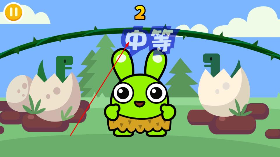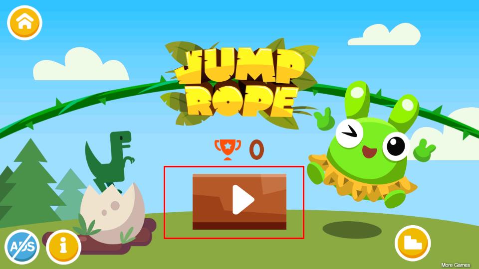 1、在主界面點(diǎn)擊棕色播放按鈕,進(jìn)入游戲,綠色角色自動(dòng)開始跳繩,上方數(shù)字實(shí)時(shí)顯示跳躍次數(shù)如2、6,同步積累獎(jiǎng)杯數(shù)。