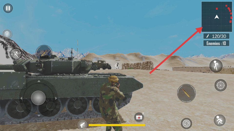 1、通過(guò)虛擬搖桿控制角色移動(dòng),滑動(dòng)屏幕調(diào)整射擊視角。