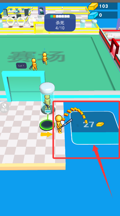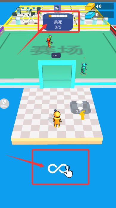 3、移動(dòng)角色接近對(duì)手,利用武器發(fā)動(dòng)攻勢(shì),完成指定擊敗數(shù)量即可過關(guān)。