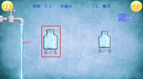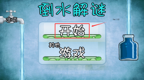 1、點(diǎn)擊紅框開始按鈕,進(jìn)入倒水解謎游戲主界面。