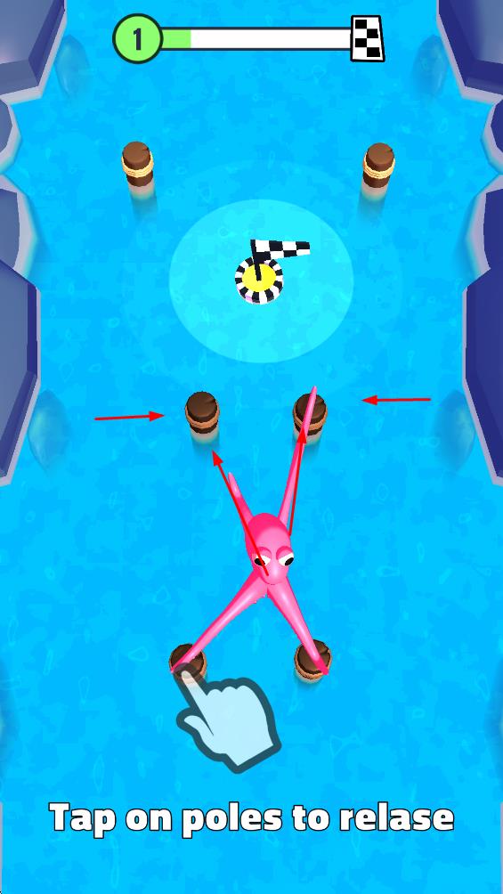 2、簡約畫質(zhì)海怪冒險(xiǎn):畫質(zhì)簡約明快,沒有復(fù)雜裝飾卻能清晰呈現(xiàn)海洋場景與八爪魚形象,玩家化身為八爪魚海怪展開冒險(xiǎn),在藍(lán)色海洋與木樁間穿梭。
