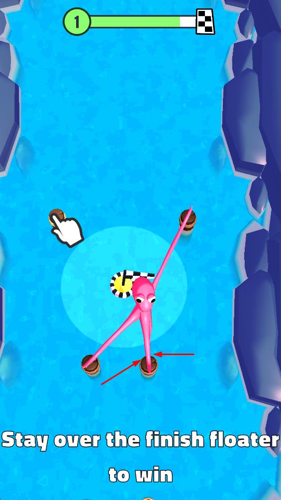 2、控制章魚停在終點(diǎn)浮標(biāo)上方,完成關(guān)卡挑戰(zhàn),為后續(xù)游戲進(jìn)程奠定基礎(chǔ)。