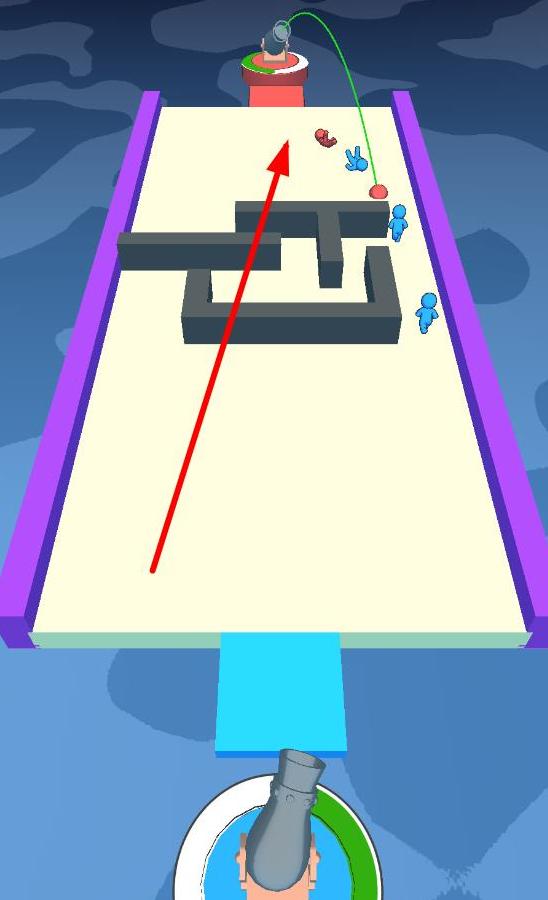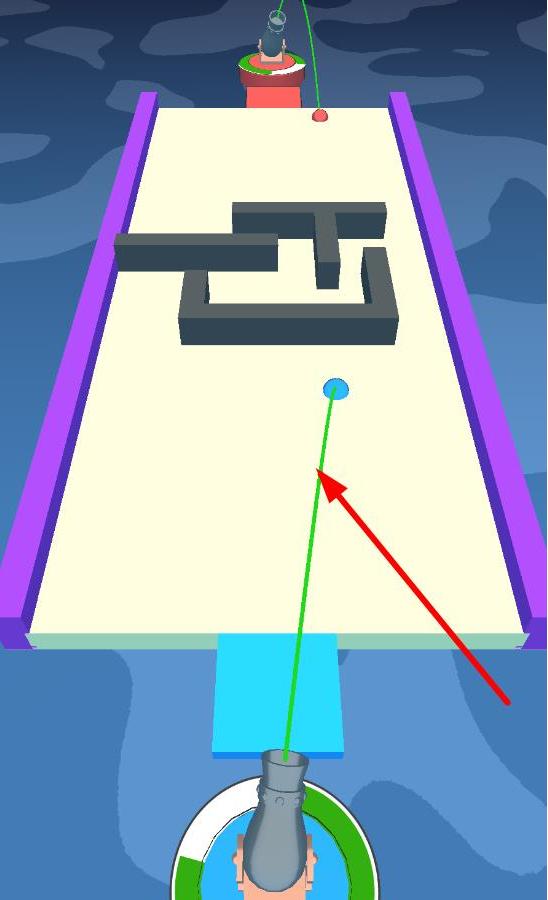 1、進(jìn)入游戲,選定初始大炮,觀察迷宮的布局后,滑動(dòng)調(diào)整發(fā)射的角度,將角色發(fā)射到場(chǎng)上。