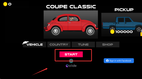 2、點(diǎn)擊start按鈕開(kāi)啟山地挑戰(zhàn),進(jìn)入精心設(shè)計(jì)的復(fù)雜地形賽道。
