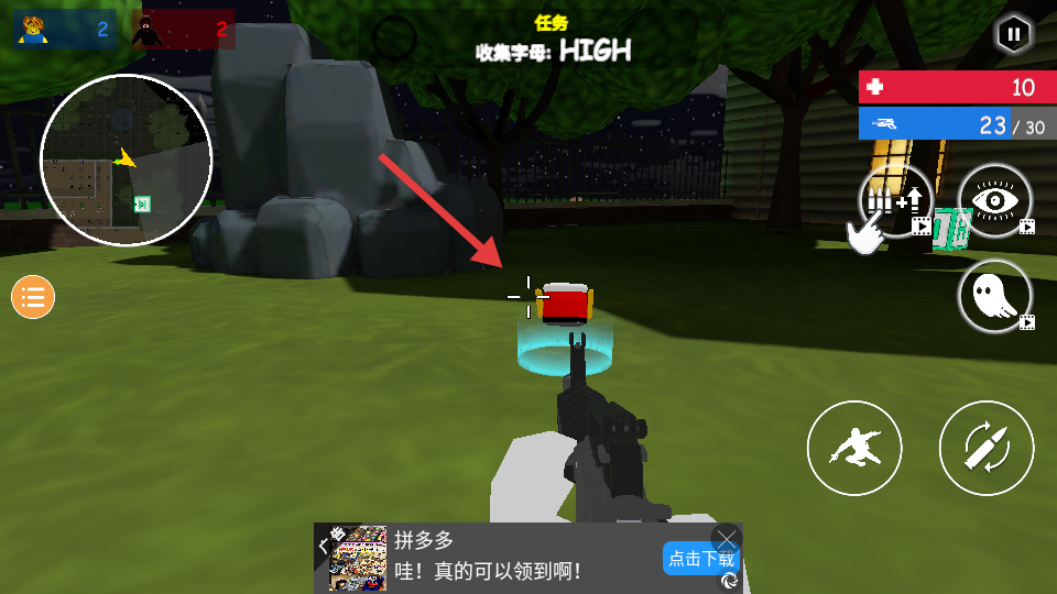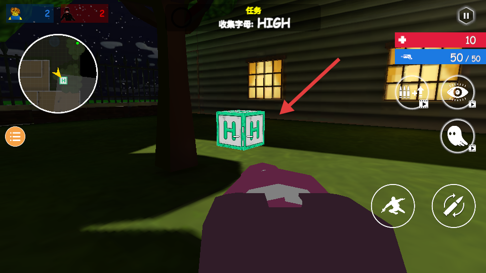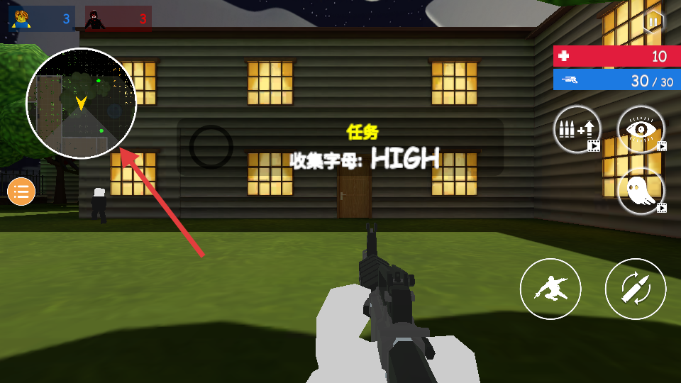2、通過虛擬搖桿控制移動,點(diǎn)擊射擊按鈕瞄準(zhǔn)敵人進(jìn)行攻擊。