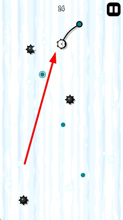 2、會根據(jù)按tap的提示點擊屏幕,讓企鵝借助彈力擺動,收集黃色星星,注意藍(lán)色光點助力,規(guī)劃擺動路徑。
