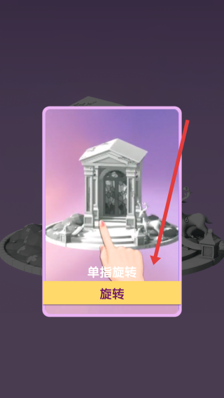 2、在教學(xué)提示界面點擊旋轉(zhuǎn)按鈕,依照單指旋轉(zhuǎn)指引,拖動屏幕轉(zhuǎn)動建筑模型,熟悉視角調(diào)整的基礎(chǔ)操作步驟。