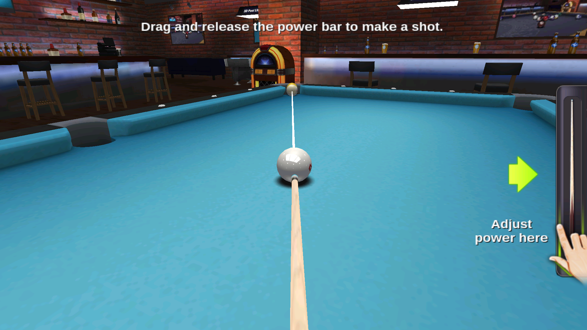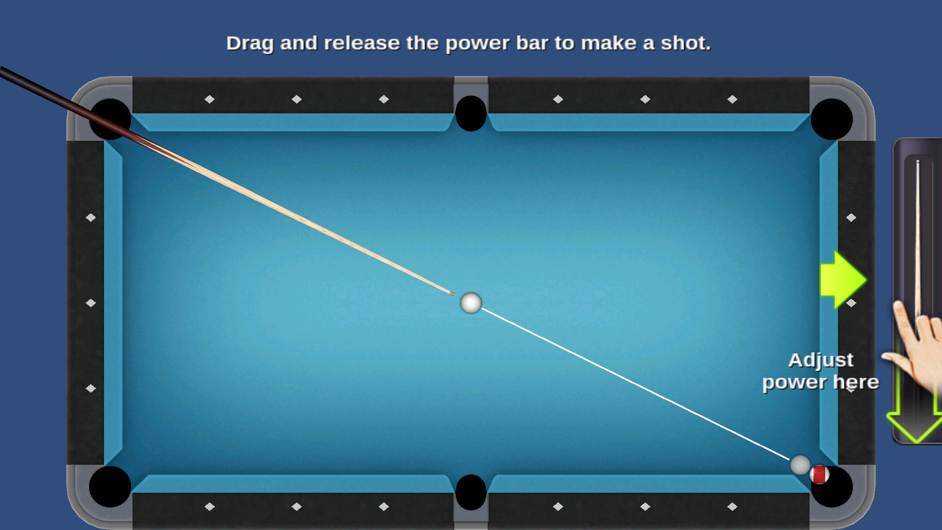 2、按照的指引,拖動(dòng)力量條,根據(jù)目標(biāo)球的位置和距離,合理控制力量大小,然后釋放力量條完成擊球動(dòng)作。