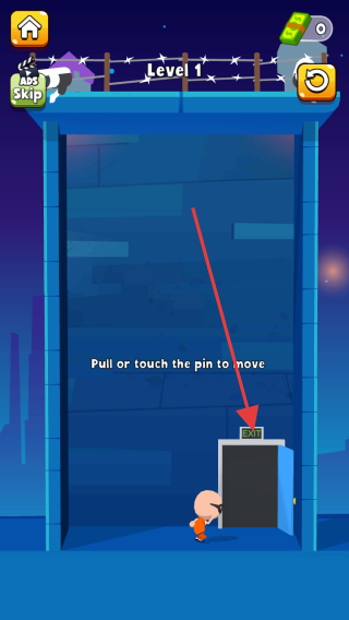 2、在游戲場景中,按照提示Pull or touch the pin to move,通過拉動或觸摸插銷,幫助角色到達門口。