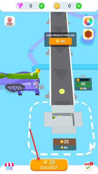 2、當(dāng)界面底部出現(xiàn)標(biāo)有20COLLECT的橙色按鈕時(shí),點(diǎn)擊該按鈕,就能收集到相應(yīng)數(shù)量的金幣,積累游戲內(nèi)的資源。