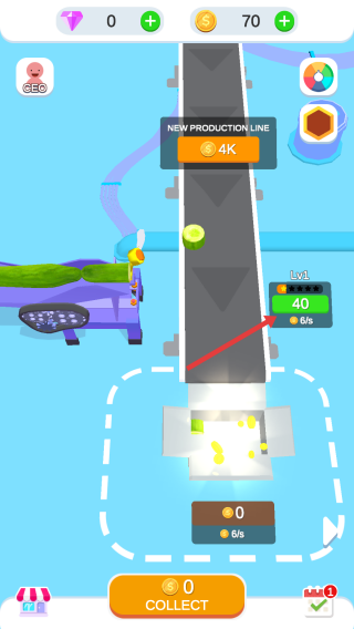 1、在游戲初始界面,點(diǎn)擊標(biāo)有Free按鈕,可免費(fèi)解鎖新的生產(chǎn)線,為后續(xù)生產(chǎn)流程拓展基礎(chǔ)。