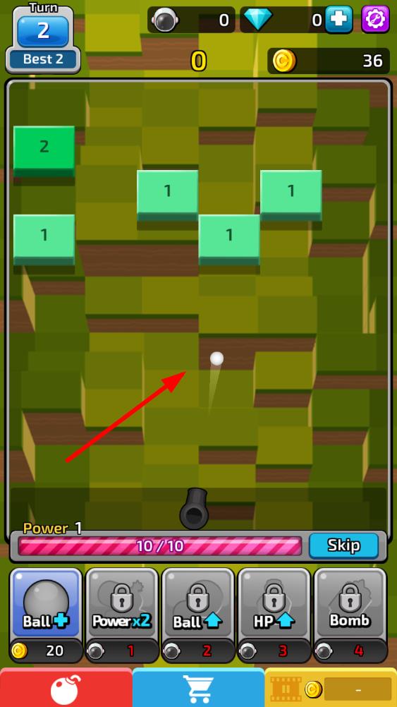 1、角度調(diào)整操作:滑動(dòng)手指控制小球拋出角度,利用墻壁和磚塊反彈調(diào)整軌跡,瞄準(zhǔn)密集或高難度磚塊區(qū)域,通過(guò)精準(zhǔn)角度讓小球一次破壞更多方塊,提升關(guān)卡完成效率。