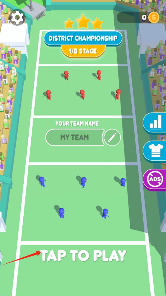 1、在體育競(jìng)技類游戲啟動(dòng)界面,點(diǎn)擊Tap-to-Play,開啟地區(qū)錦標(biāo)賽1/8階段的團(tuán)隊(duì)對(duì)抗。