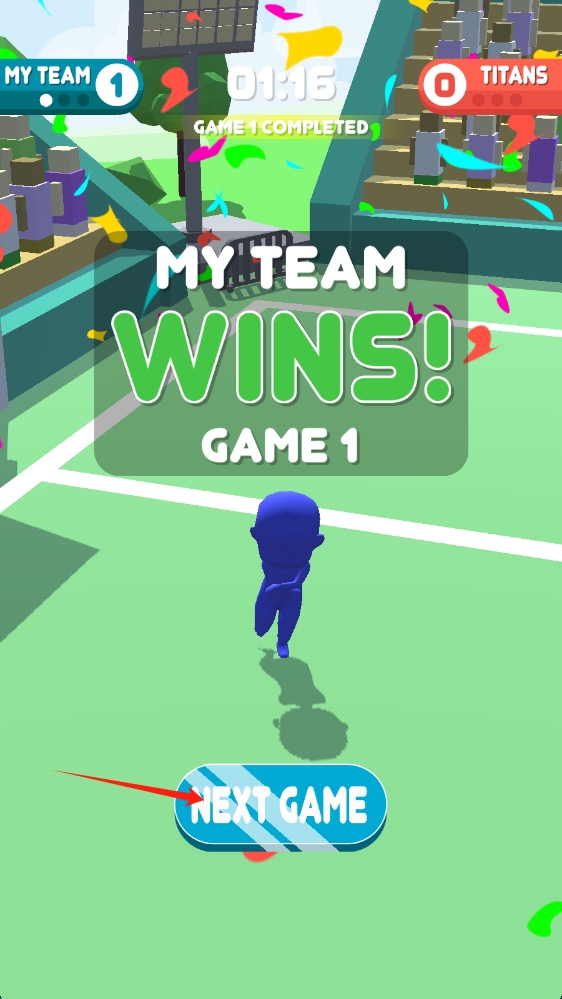 3、當(dāng)我方隊(duì)伍獲勝后,在游戲勝利界面點(diǎn)擊Next-Game,進(jìn)入下一局比賽,繼續(xù)團(tuán)隊(duì)對(duì)抗挑戰(zhàn),向著錦標(biāo)賽冠軍邁進(jìn)。