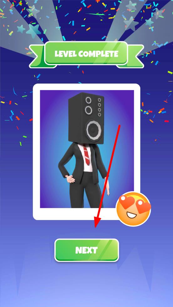 3、沖過終點(diǎn)觸發(fā)結(jié)算,如果和目標(biāo)衣物一樣,會(huì)得到微笑的表情,點(diǎn)擊進(jìn)入下一關(guān),挑戰(zhàn)復(fù)雜穿搭目標(biāo)。