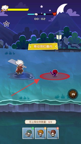 3、在游戲場景中,根據(jù)提示移動到紅圈內(nèi),操控角色移動到指定紅圈位置,完成任務(wù)目標(biāo),推進(jìn)游戲進(jìn)程。