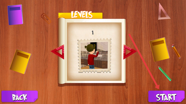 2、進入關卡選擇界面,點擊右下角紫色START按鈕,進入Level-1場景,開啟女孩的校園探索挑戰(zhàn)。