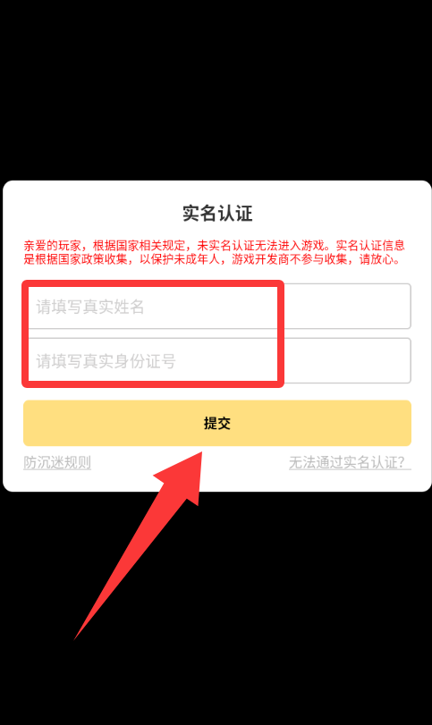 2、填寫實(shí)名姓名和身份證號(hào)碼并提交。
