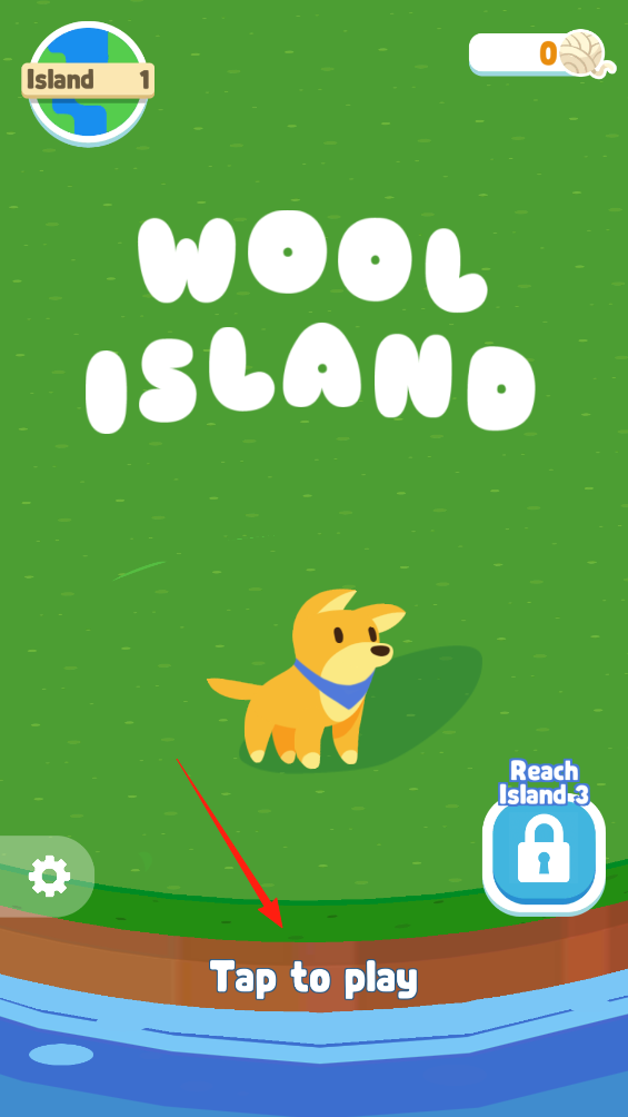 1、點Tap to play就能開始冒險,小黃狗會帶著藍色圍巾在島嶼上探索,右上角會記錄收集到的羊毛幣數(shù)量,攢夠這些就能解鎖通往島嶼3的新區(qū)域,那里藏著特別驚喜。