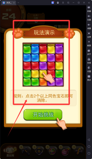 3、游戲以消除同色寶石為主要目標(biāo),結(jié)合收集或護(hù)送寵物等多樣化任務(wù)設(shè)計(jì),為玩家?guī)碡S富的挑戰(zhàn)內(nèi)容和游戲目標(biāo)。