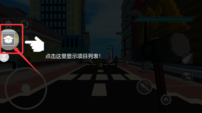 2、進(jìn)入所選場景后,點(diǎn)擊左側(cè)帶有盒子圖標(biāo)的按鈕,調(diào)出項(xiàng)目列表。