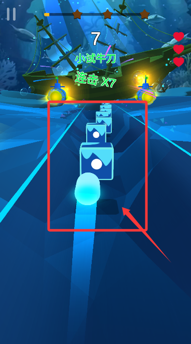 2、隨著音樂節(jié)拍精準(zhǔn)操控光球,擊中有標(biāo)記的節(jié)奏方塊保持連擊。