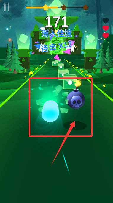 3、謹慎避開沿途的危險物,觸碰炸彈將會中斷當(dāng)前連擊記錄。