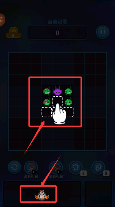 3、將底部圖案拖拽至頂部網(wǎng)格的合適位置完成擺放,形成組合時(shí)自動(dòng)消除。