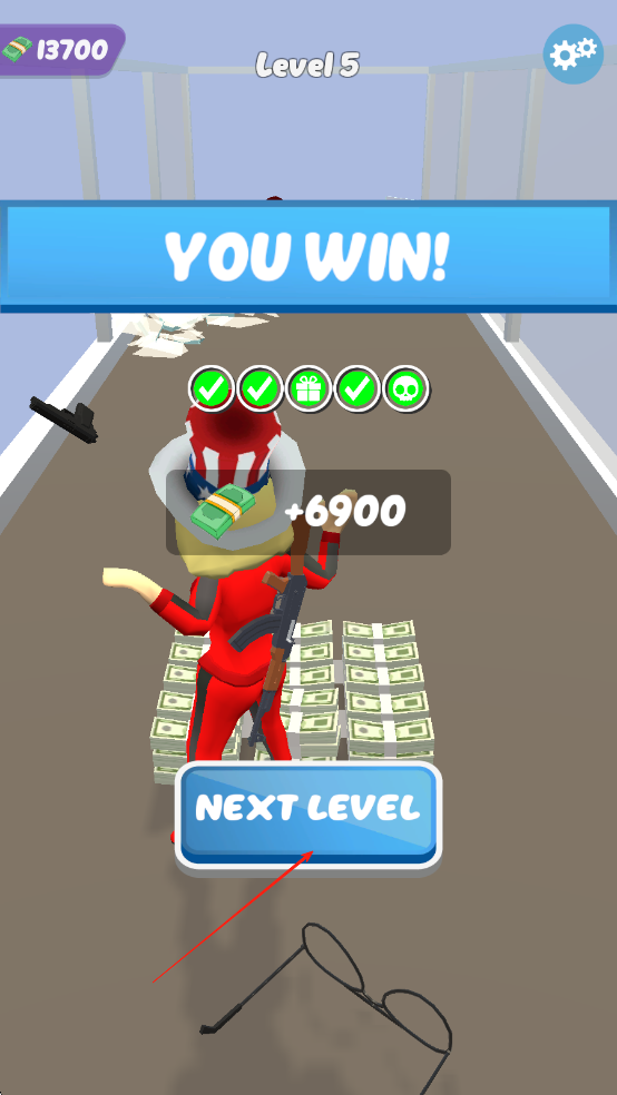 3、擊倒所有敵人之后即可獲得大量錢幣獎(jiǎng)勵(lì),獲得的錢幣在主頁可以增加躲避子彈的時(shí)間以及子彈的數(shù)量。