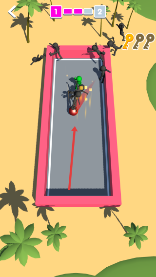 3、每關(guān)完成后進入下一不同的場景,保持撞擊的節(jié)奏,通過圍欄反彈,全數(shù)擊中小人,積累分數(shù)。