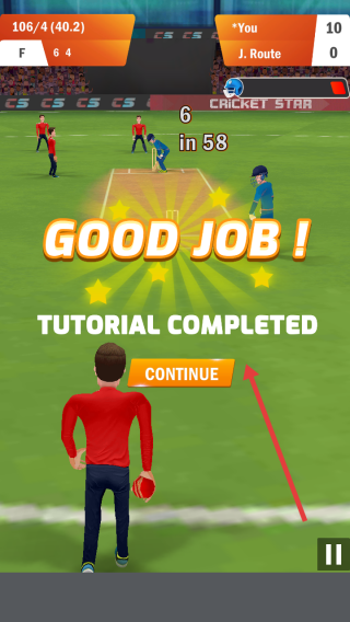 3、成功擊球后,點CONTINUE解鎖新關(guān)卡,反復(fù)練習(xí)擊球時機(jī)、方向,積累技巧沖擊賽事高分。
