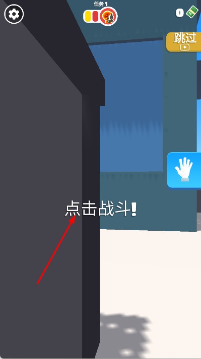 1、進(jìn)入界面,點(diǎn)擊戰(zhàn)斗按鈕,在戰(zhàn)斗場景中,通過點(diǎn)擊屏幕瞄準(zhǔn)敵人,發(fā)射子彈進(jìn)行攻擊。