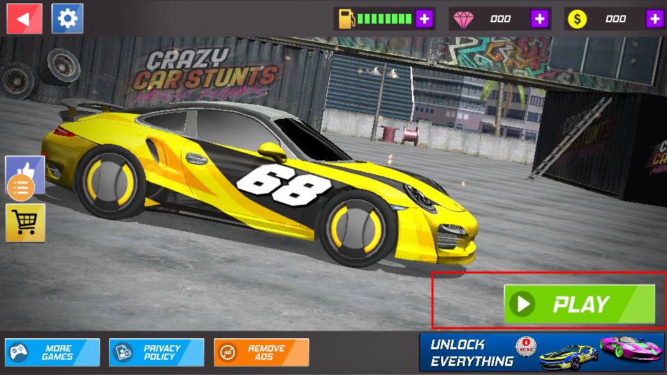 1、在車輛展示界面,點(diǎn)擊右下角綠色PLAY按鈕,進(jìn)入賽道起始區(qū),三輛賽車黃、橙、紅列于START拱門前,準(zhǔn)備開啟競(jìng)速。