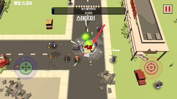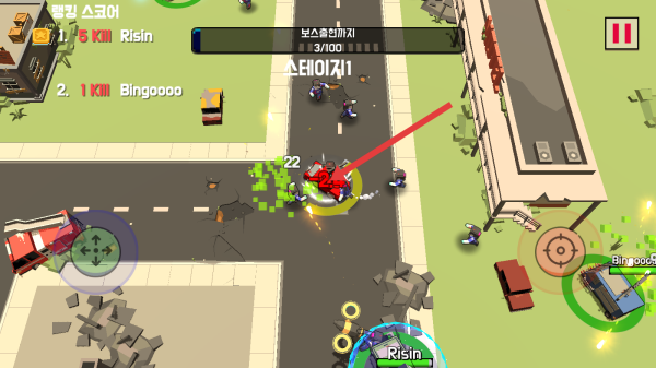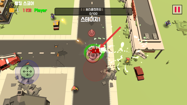 1、用左側(cè)的搖桿來控制角色移動,右側(cè)的按鈕射擊或者發(fā)射技能,優(yōu)先攻擊包圍過來的敵人以及車輛。