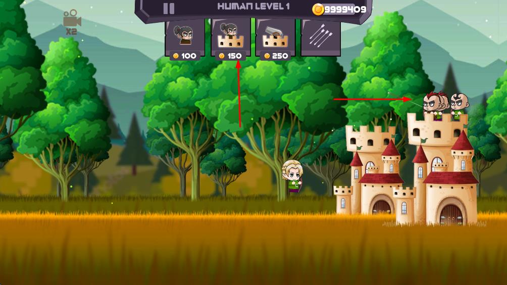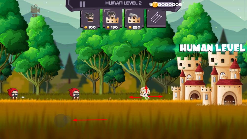3、敵人靠近城堡時(shí),借助已布置的單位發(fā)起攻擊,擊敗敵人可獲取金幣,用于解鎖更高級(jí)單位。