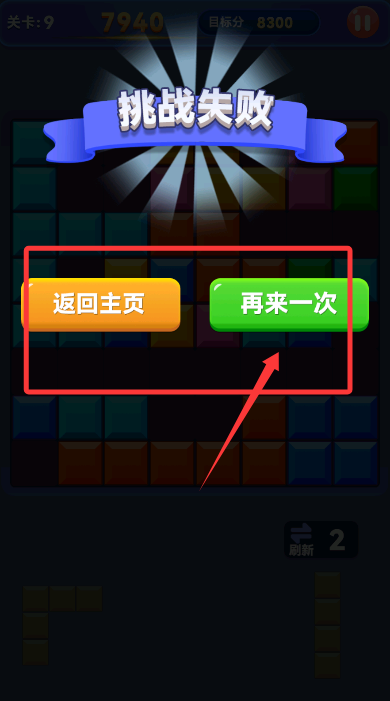 4、當(dāng)闖關(guān)失敗時(shí),可重試當(dāng)前關(guān)卡或返回主界面選擇新挑戰(zhàn)。